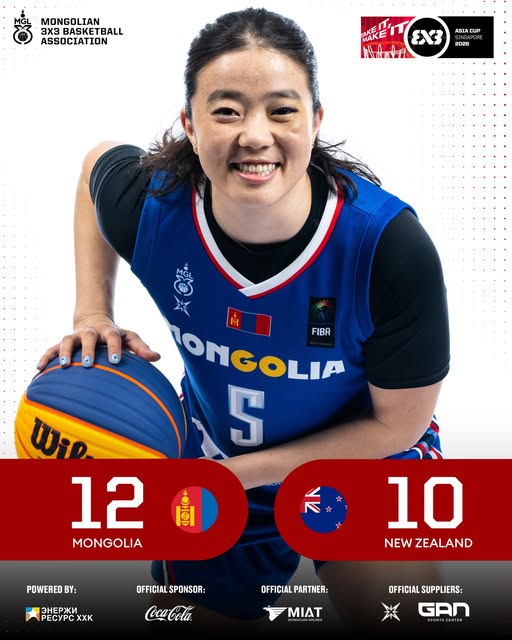 Сагсан бөмбөгийн “FIBA” 3x3-ын Ази тивийн аварга шалгаруулах тэмцээн хэсгийн өрсөлдөөнөөр үргэлжилж байна. Монгол Улсын эмэгтэй шигшээ баг эхний тоглолтод Малайзын багийн 20:6-гаар, тэмцээний хэсгийн сүүлийн тоглолтоо Шинэ Зеаландын шигшээ багийн эсрэг хийж 12:10-ын харьцаагаар ялалт байгууллаа. Манай шигшээ баг ийнхүү 2:0 амжилтаар хэсгээ тэргүүлж явна.