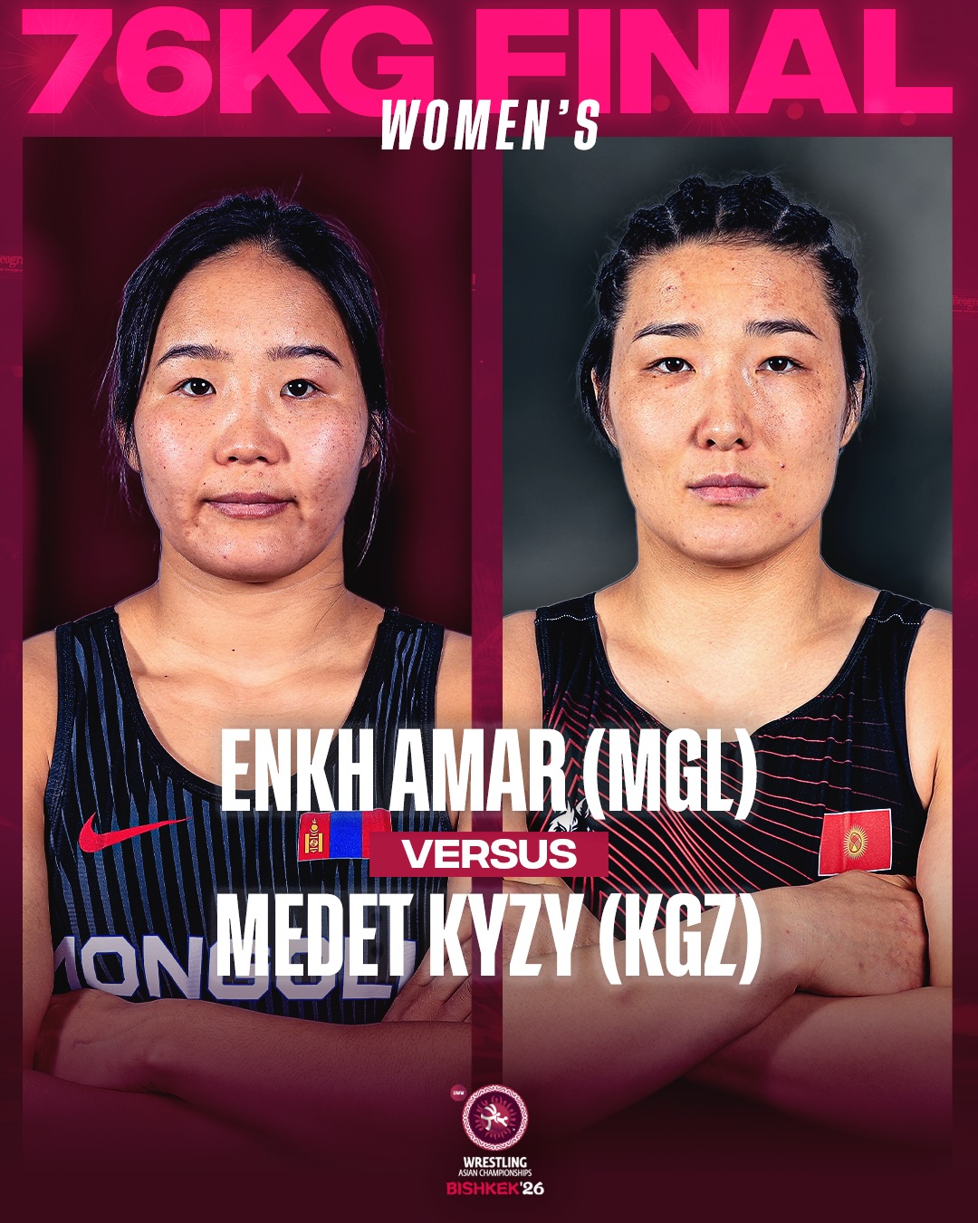 Киргизстаны Бишкек хотод "Бишкек-2026" чөлөөт, сонгомол бөхийн Ази тивийн аварга шалгаруулах тэмцээн үргэлжилж байна. Азийн аваргын эмэгтэйчүүдийн 76 кг-ын жингийн хагас шигшээд ДАШТ-ий мөнгөн медальт, ОУХМ Э.Даваанасан, Казахстаны Гюльмарал Еркебаеваг 7:2 оноогоор яллаа.