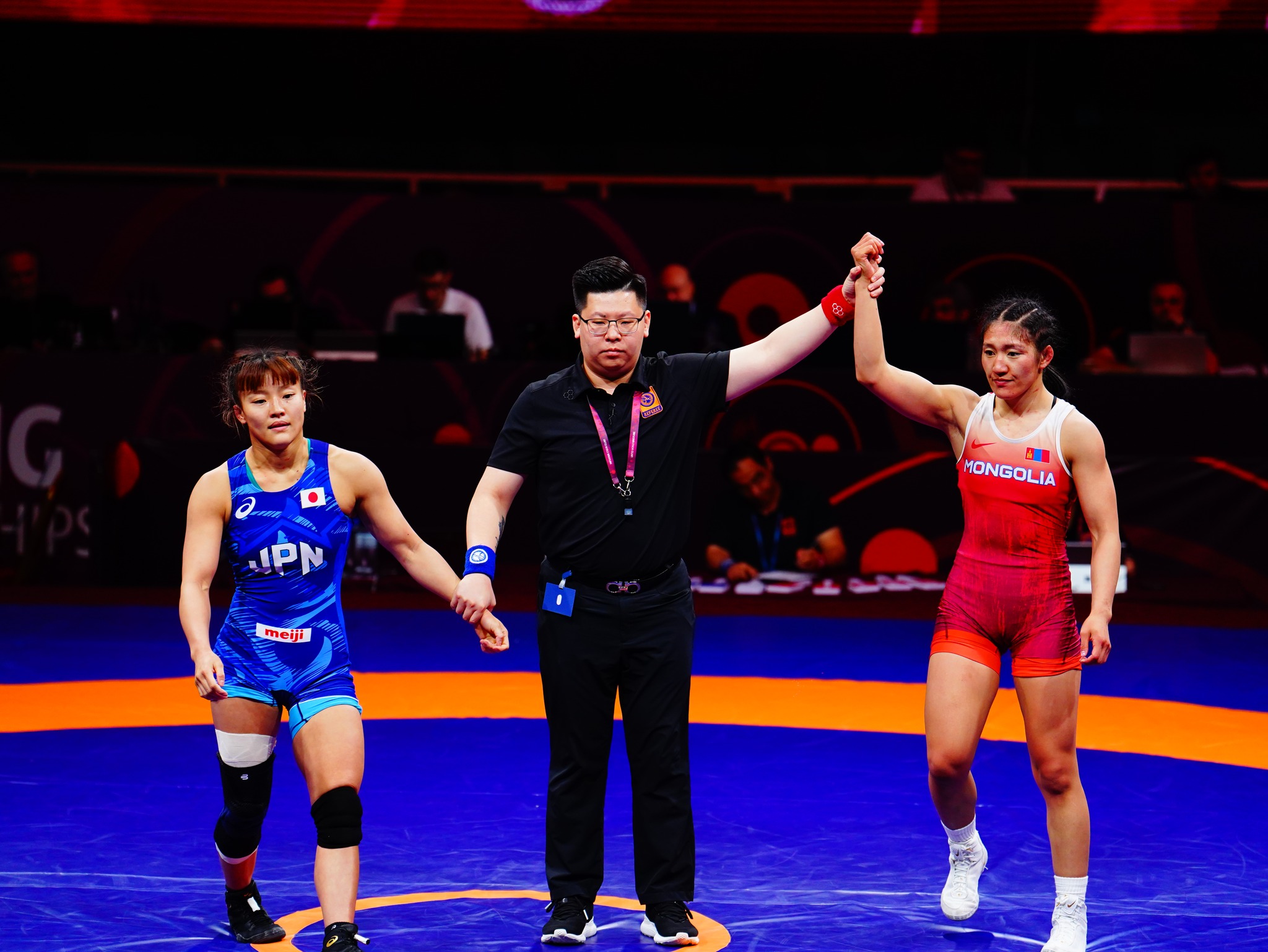 Түүний хувьд, хагас шигшээд Японы бөх, Азийн хошой аварга Сара Натамитэй барилдлаа. Эхний үед манай тамирчин 4:1 оноогоор илүүрхсэн бол шийдвэрлэх үеийн эхэнд лав барьцнаас мордож, бүхэл оноогоор унагаад, залгаж даралтаар өрсөлдөгчөө цэвэр ялав.