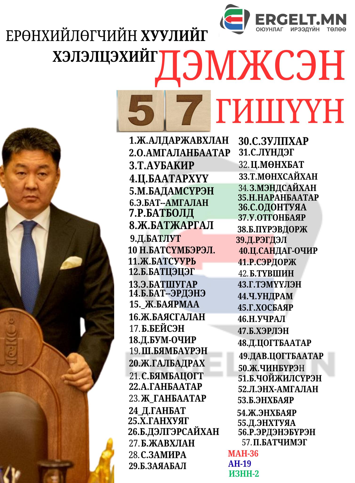 АРДЧИЛСАН НАМЫН 19 ГИШҮҮН ЕРӨНХИЙЛӨГЧИЙН САНААЧИЛСАН ХУУЛИЙГ ДЭМЖЛЭЭ