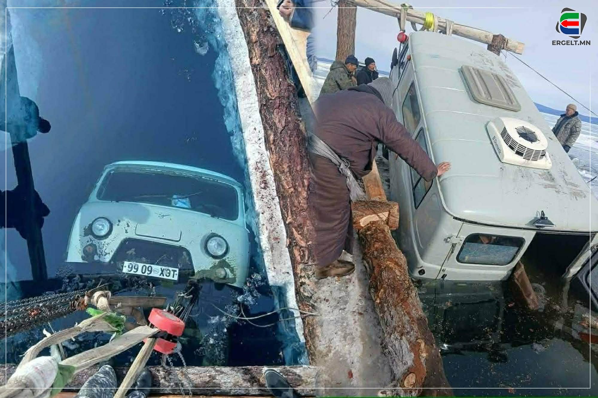 -Ренчинлхүмбэ сумын залуус өмнө нь ГАЗ-66 гэдэг машин татаж гаргаж байсан юм билээ. Тэдний өмнө хэрэглэж байсан дэгээ төмөр, тээрмийг ашигласан. Камераа ус руугаа оруулаад, машиныхаа байр байдлыг харсан учраас бушуухан л гаргахыг бодож байлаа. Эхлээд машин байгаа хэсгийн мөсийг цөмөлж, татаж гаргах тээрмээ байрлуулсан. Тэгээд тороосныхоо үзүүрт дэгээ төмөр байрлуулаад, машиныхаа зүгт явуулсан. Миний машин байсан далайн ёроол нь лаг шавар ихтэй, их гэрлээ давтал шаварт зоогдсон байсан. Азаар машиныхаа урд хэсэгт чирэгч олс хийсэн байсан учраас тэндээ дэгээ төмрөө хийгээд, татаж гаргалаа. Мэргэжлийн хүмүүс байхгүй учраас шумбах ямар ч боломж байгаагүй. Зөвхөн камераараа л хянаж байсан.