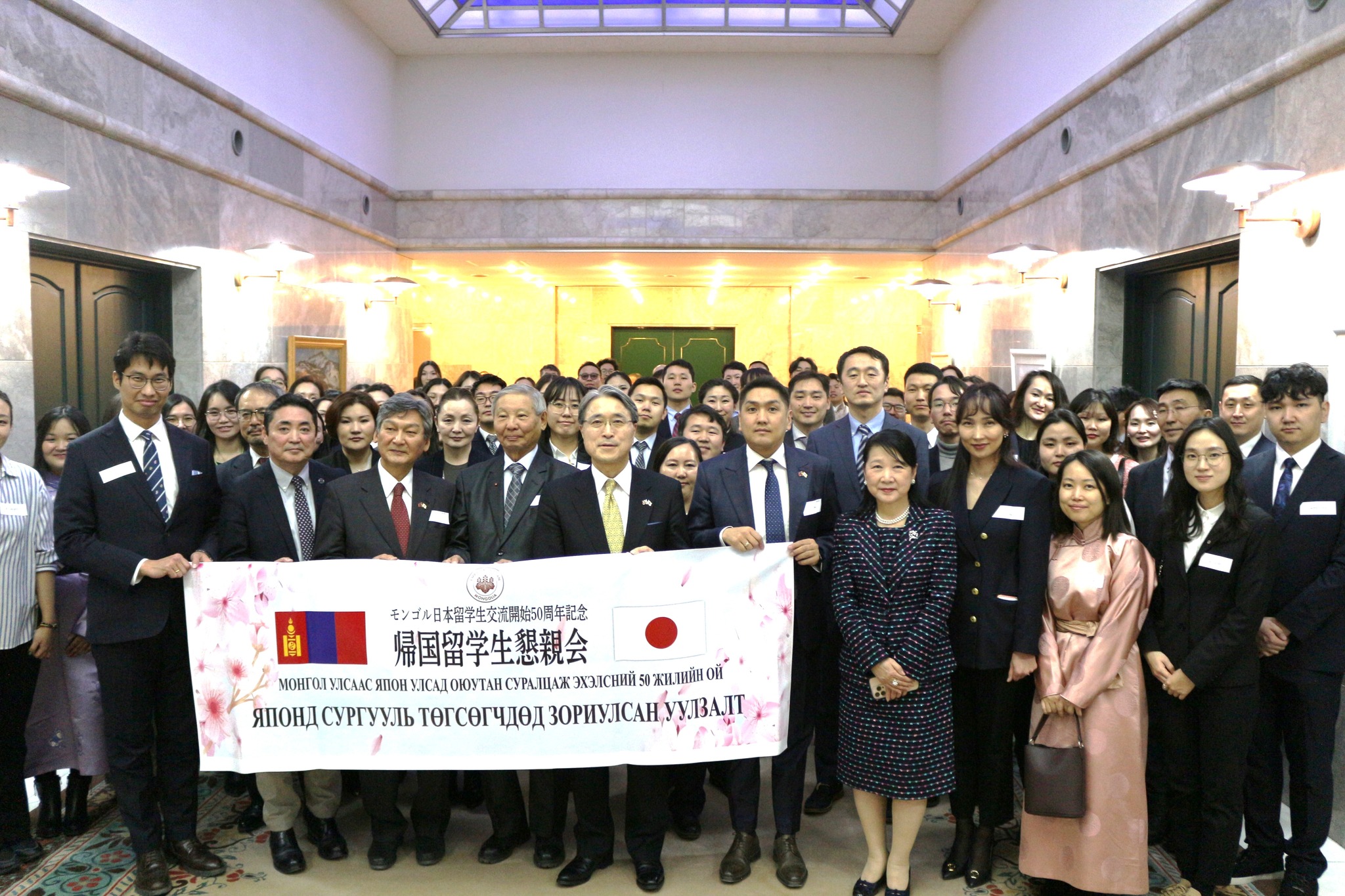 Энэ жил Монгол Улсаас Японы Засгийн газрын тэтгэлгээр анхны монгол оюутан Японд суралцаж эхэлсний 50 жилийн ойн түүхэн онцлог жил тохиож байна. Хүлээн авалтад Монголд үйл ажиллагаа явуулдаг Японд сургууль төгсөгчдийн холбоо, нийгэмлэгээс “Жугамо”, “JDS” төгсөгчдийн холбоо оролцсон юм.