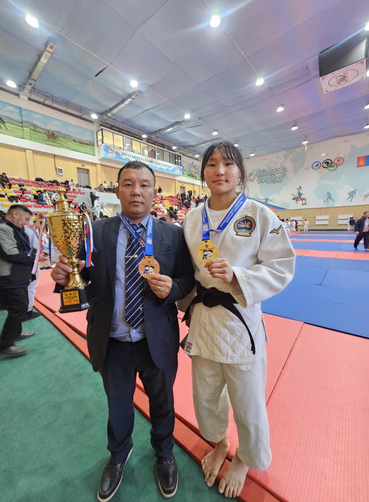 -Жүдо бөхийн өсвөрийн ДАШТ-ээс хүрэл медаль хүртсэн. Охидын 57 кг-ын жинд М.Цэндбазарын хамт медалийн тавцанд хамтдаа гарсан мөч сайхан байсан биз?